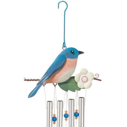 We were so excited to get this lovely new Blulebird Wind Chime on the site, we haven't even really had the chance to write a full whimsical description! This metal bluebird windchime will make a wonderful holiday gift, and can be enjoyed far into the following year and beyond. Hand painted metal bluebird with flowers topper, beautiful beads, and melodious 1/2" diameter aluminum tubes that range from 8 3/4" to 11 3/4" in length. You will love it! Additional Info: Bluebird Wind Chime Approx size: 7"W x 23"H Hand painted Metal, Beads, Aluminum Chimes Sweet design with warm blue hues Comes ready to hang in your garden!